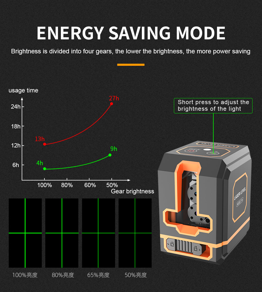 Beneya 2-Line Green Beam Laser Level with Light Intensity Adjustment, Rechargeable Lithium Battery (Type-C Port), Horizontal & Vertical Self-Leveling Tool