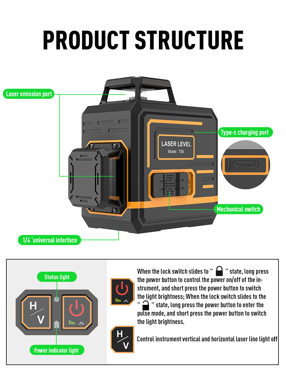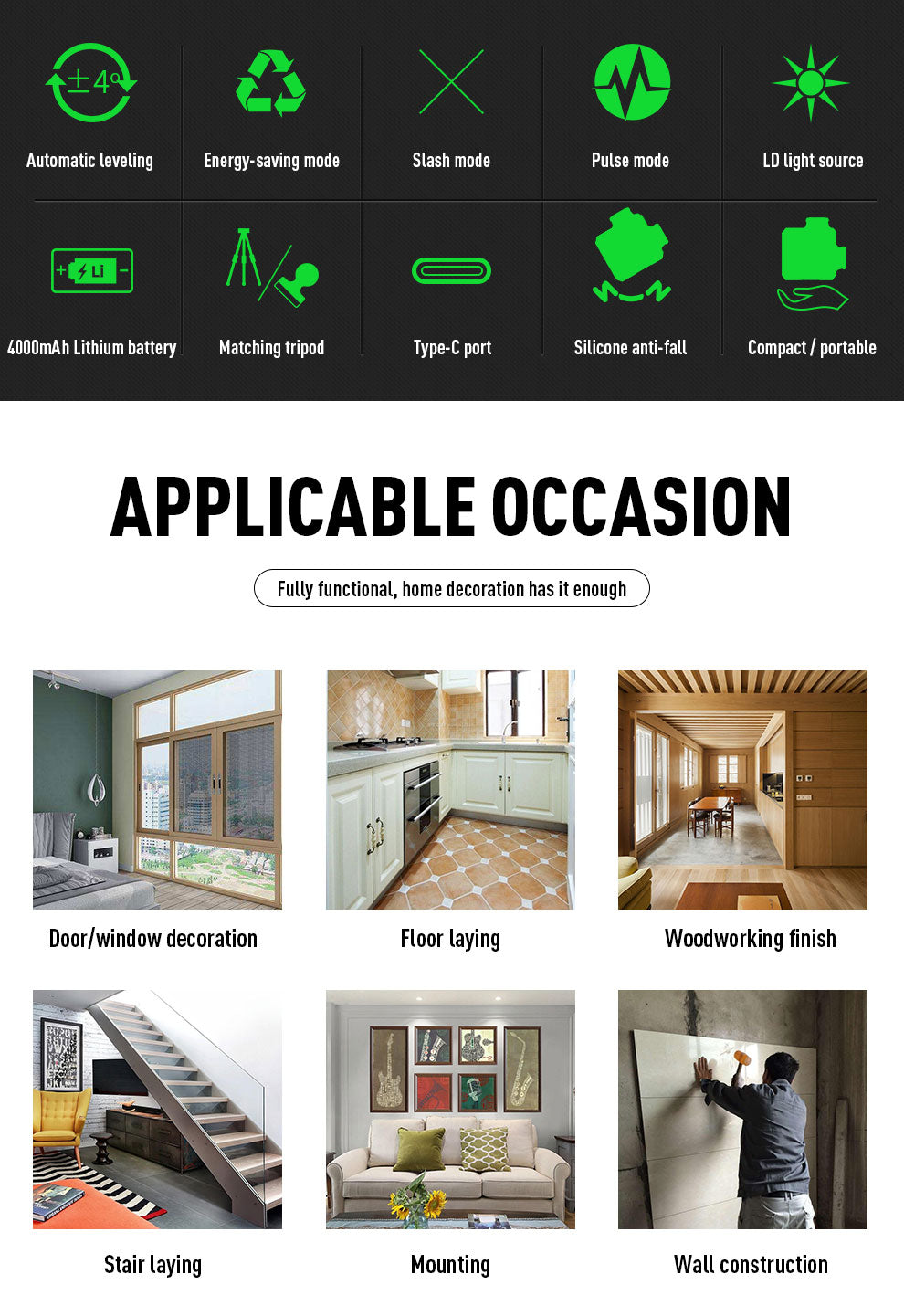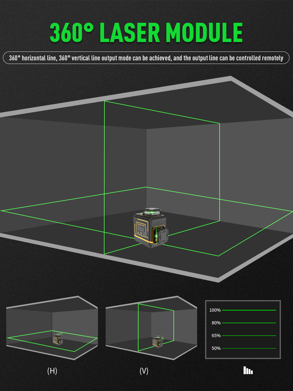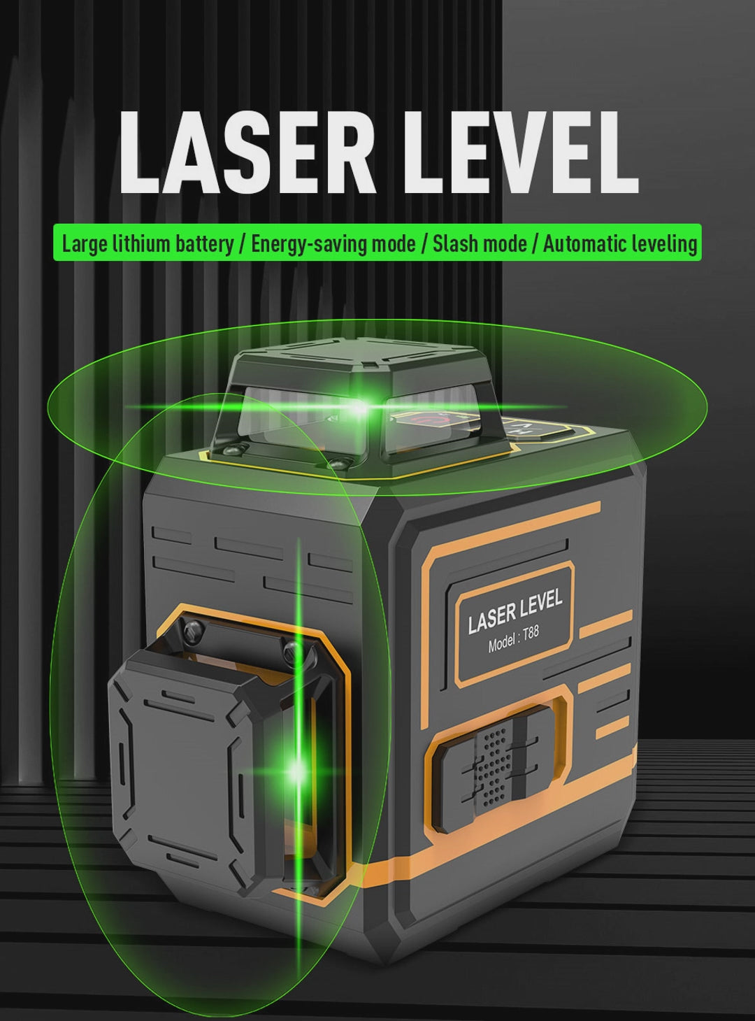 Beneya 8-Line 2×360° Green Beam Laser Level with Light Intensity Adjustment, Rechargeable Lithium Battery (Type-C Port), Horizontal & Vertical Self-Leveling Tool. Suitable for Indoor/Outdoor Renovation in Residential and Commercial Applications. Includes: Magnetic Pivot Base, Charging Cable, and Hard-shell Carrying Case for Portability