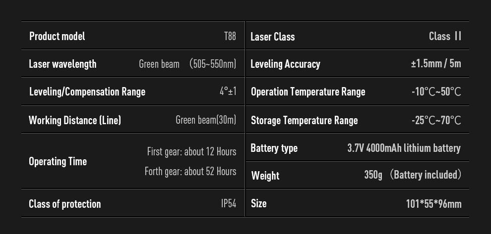 Leveling Accuracy: ±3mm/10m
