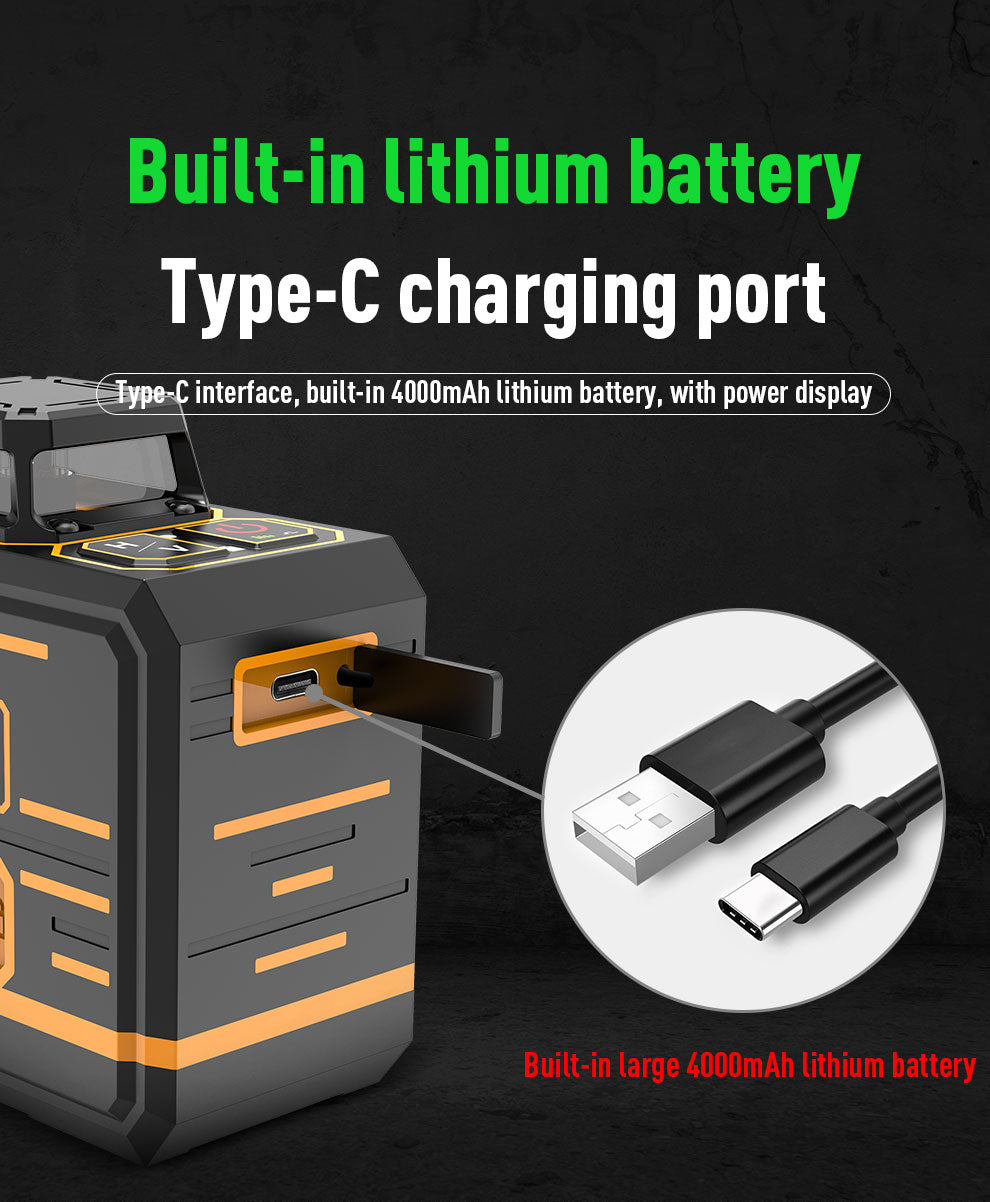Beneya 8-Line 2×360° Green Beam Laser Level with Light Intensity Adjustment, Rechargeable Lithium Battery (Type-C Port), Horizontal & Vertical Self-Leveling Tool