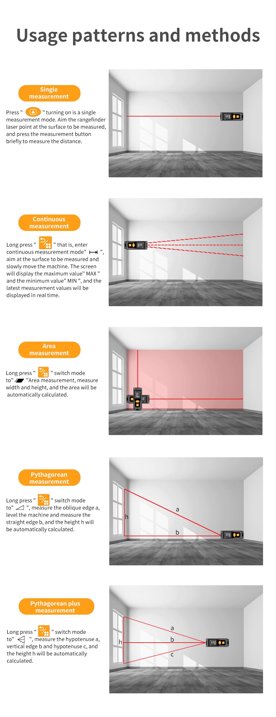 Beneya Professional 328ft/100m Laser Measurement Tool Red Beam, Digital Laser Measure Meter LCD Backlit Display, m/ft/in, Area and Volume