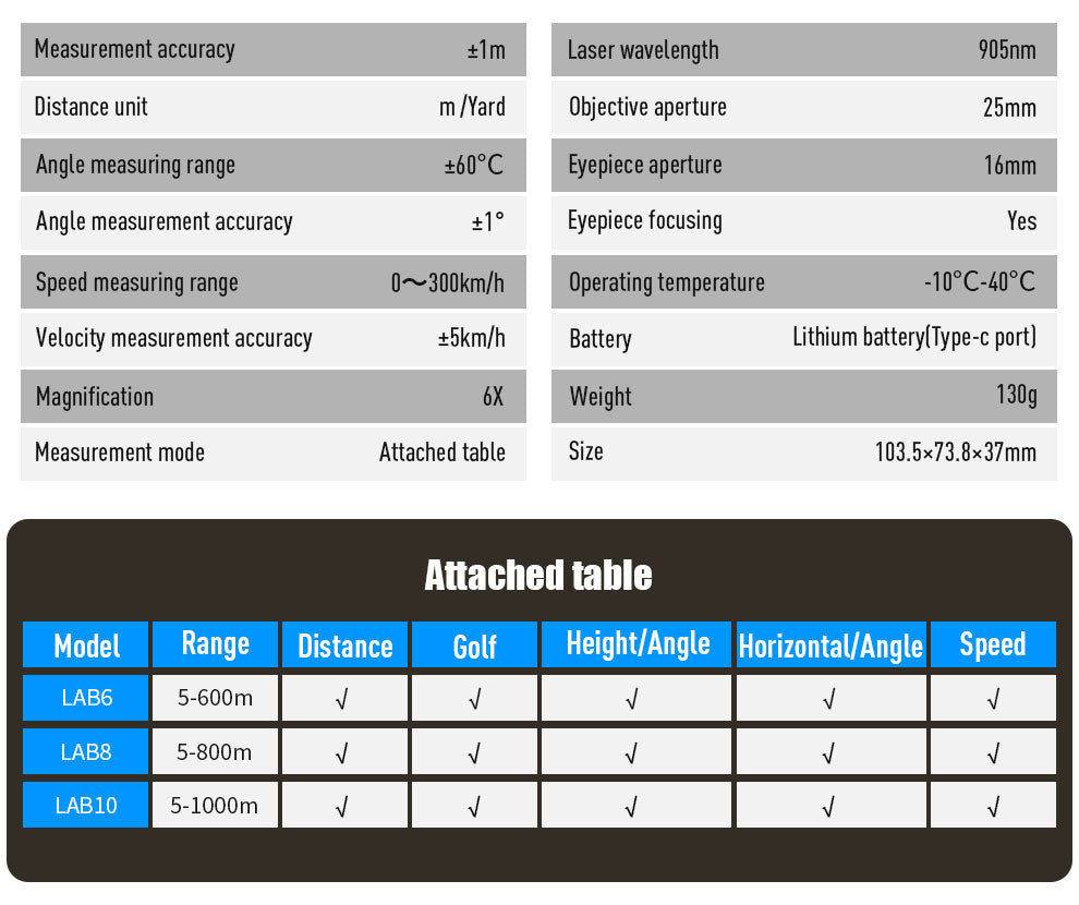 **Measurement Range:** 800m / 1200m / 2000m