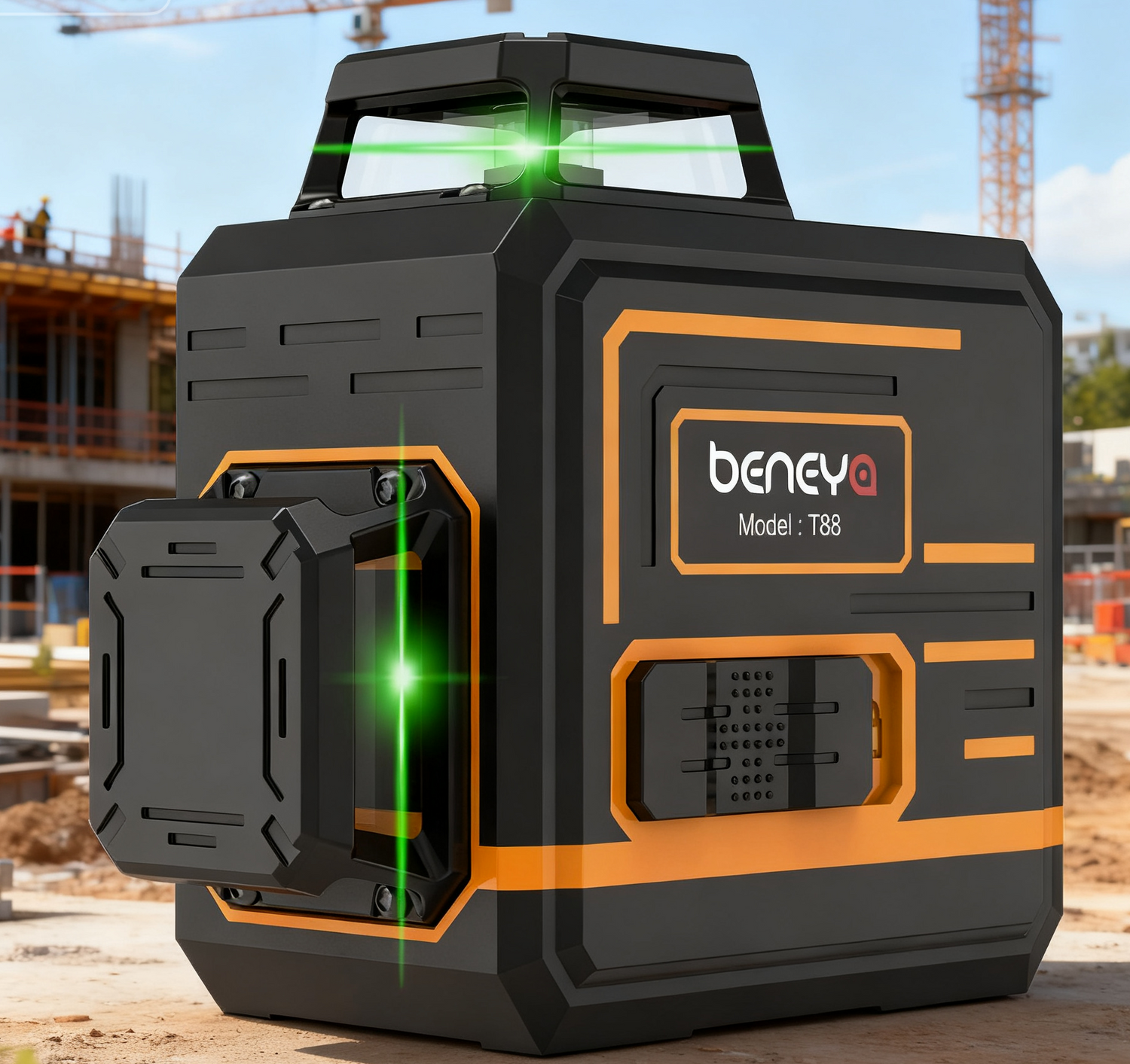 Beneya 8-Line 2×360° Green Beam Laser Level with Light Intensity Adjustment, Rechargeable Lithium Battery (Type-C Port), Horizontal & Vertical Self-Leveling Tool