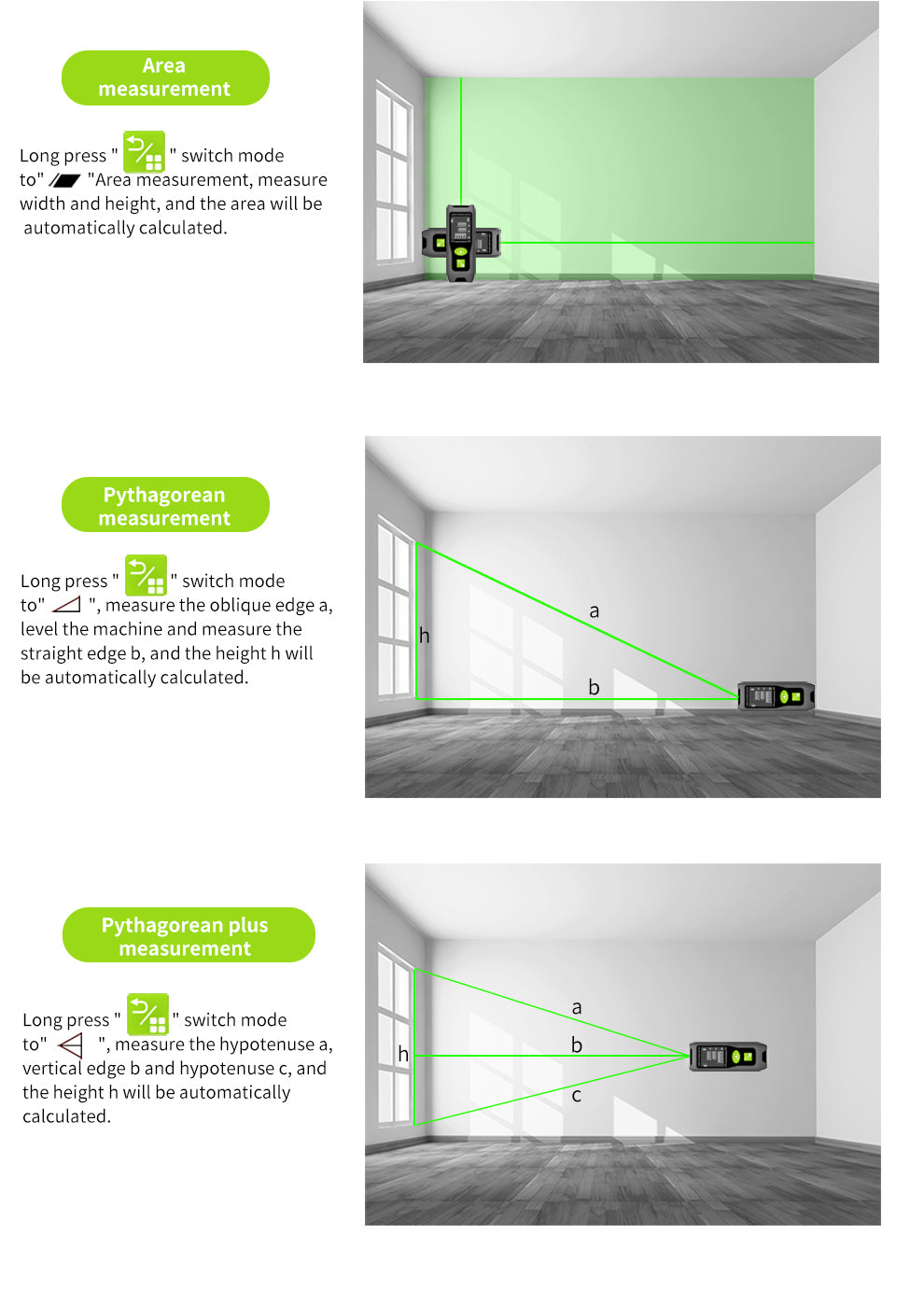 Beneya Professional 262ft/80m Laser Measurement Tool Green Beam, Digital Laser Measure Meter LCD Backlit Display, m/ft/in, Area and Volume